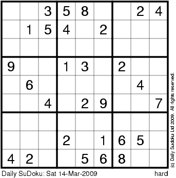 The Daily SuDoku: Sat 14-Mar-2009