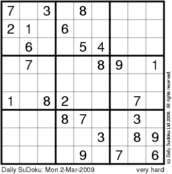 The Daily SuDoku: Mon 2-Mar-2009