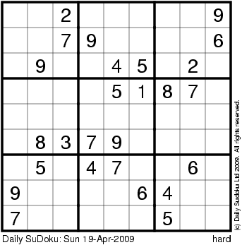 The Daily SuDoku: Sun 19-Apr-2009