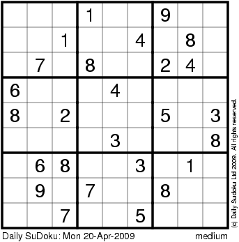 The Daily SuDoku: Mon 20-Apr-2009