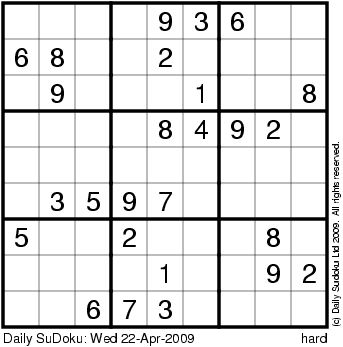 The Daily SuDoku: Wed 22-Apr-2009