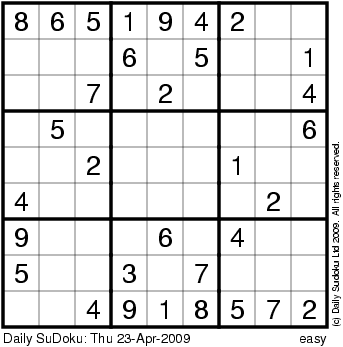 The Daily SuDoku: Thu 23-Apr-2009