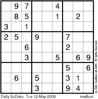 The Daily SuDoku: Tue 12-May-2009
