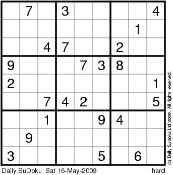 The Daily SuDoku: Sat 16-May-2009