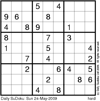 The Daily SuDoku: Sun 24-May-2009