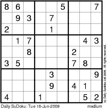 The Daily SuDoku: Tue 16-Jun-2009