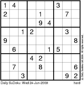 The Daily SuDoku: Wed 24-Jun-2009