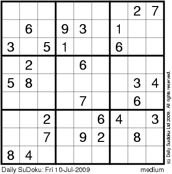 The Daily SuDoku: Fri 10-Jul-2009