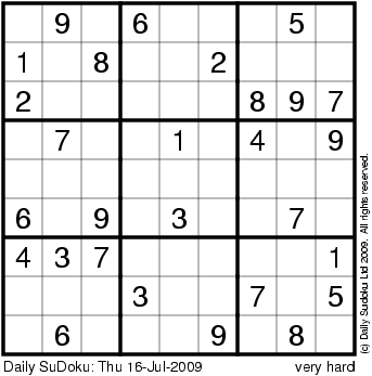 The Daily SuDoku: Thu 16-Jul-2009