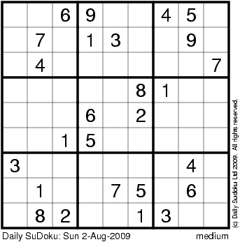 The Daily SuDoku: Sun 2-Aug-2009