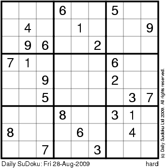 The Daily SuDoku: Fri 28-Aug-2009