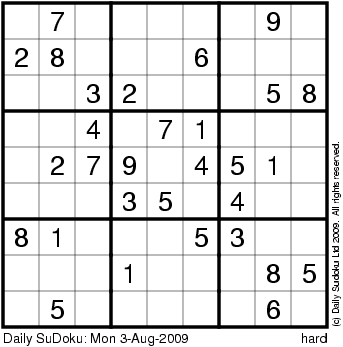 The Daily SuDoku: Mon 3-Aug-2009
