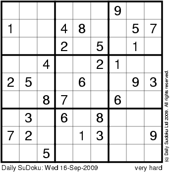 The Daily SuDoku: Wed 16-Sep-2009
