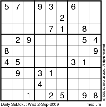 The Daily SuDoku: Wed 2-Sep-2009