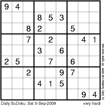 The Daily SuDoku: Sat 5-Sep-2009