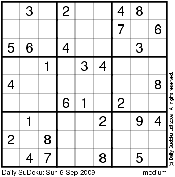 The Daily SuDoku: Sun 6-Sep-2009