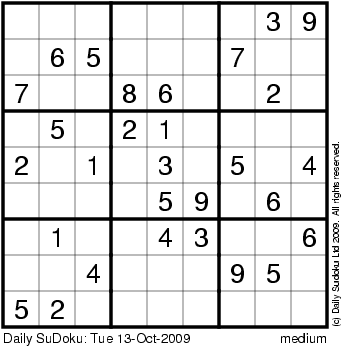 The Daily SuDoku: Tue 13-Oct-2009
