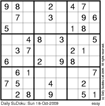 The Daily SuDoku: Sun 18-Oct-2009