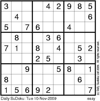 The Daily SuDoku: Tue 10-Nov-2009