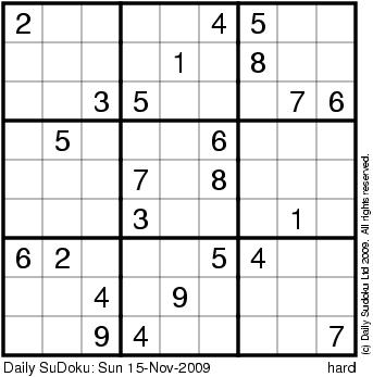 The Daily SuDoku: Sun 15-Nov-2009