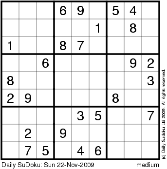 The Daily SuDoku: Sun 22-Nov-2009