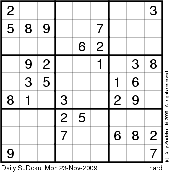 The Daily SuDoku: Mon 23-Nov-2009