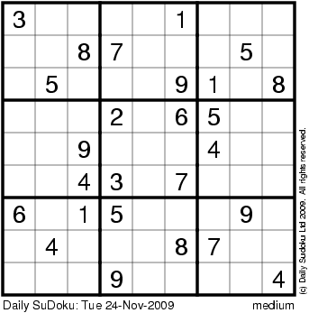 The Daily SuDoku: Tue 24-Nov-2009