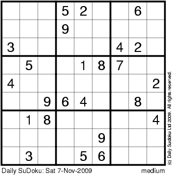 The Daily SuDoku: Sat 7-Nov-2009