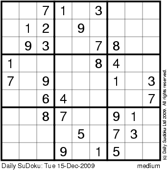 The Daily SuDoku: Tue 15-Dec-2009