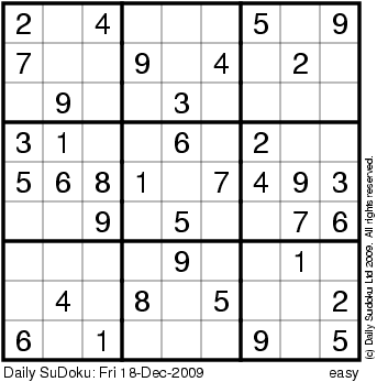 The Daily SuDoku: Fri 18-Dec-2009
