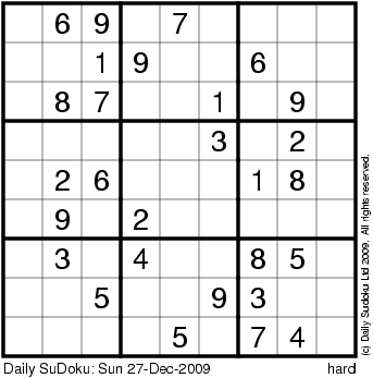 The Daily SuDoku: Sun 27-Dec-2009