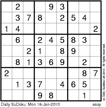 The Daily SuDoku: Mon 18-Jan-2010