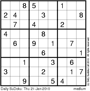 The Daily SuDoku: Thu 21-Jan-2010