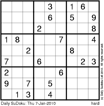 The Daily SuDoku: Thu 7-Jan-2010