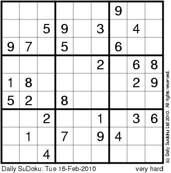 The Daily SuDoku: Tue 16-Feb-2010
