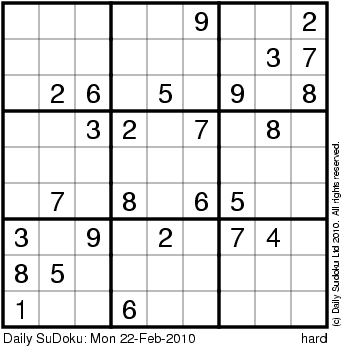 The Daily SuDoku: Mon 22-Feb-2010