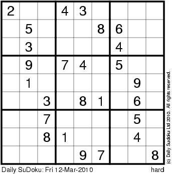 The Daily SuDoku: Fri 12-Mar-2010