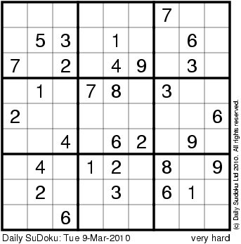 The Daily SuDoku: Tue 9-Mar-2010