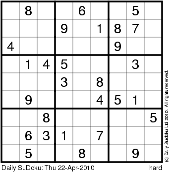 The Daily SuDoku: Thu 22-Apr-2010