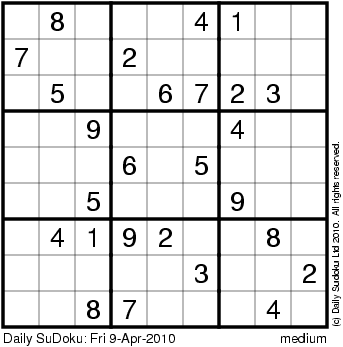 The Daily SuDoku: Fri 9-Apr-2010
