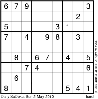 The Daily SuDoku: Sun 2-May-2010