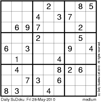 The Daily SuDoku: Fri 28-May-2010