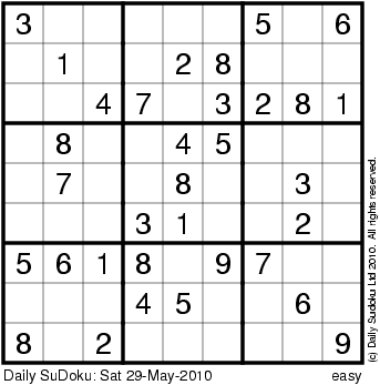The Daily SuDoku: Sat 29-May-2010
