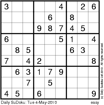 The Daily SuDoku: Tue 4-May-2010
