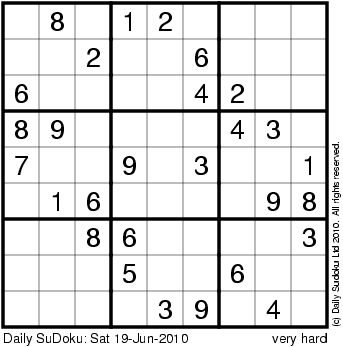 The Daily SuDoku: Sat 19-Jun-2010