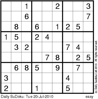 The Daily SuDoku: Tue 20-Jul-2010
