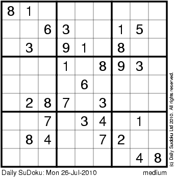 The Daily SuDoku: Mon 26-Jul-2010