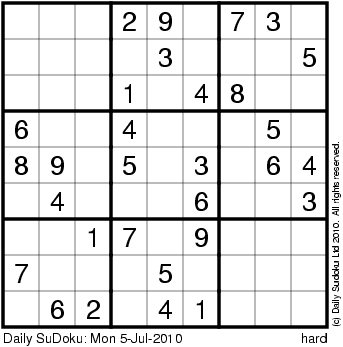 The Daily SuDoku: Mon 5-Jul-2010