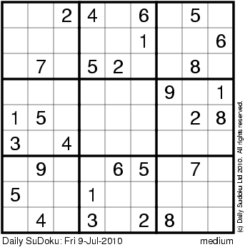 The Daily SuDoku: Fri 9-Jul-2010