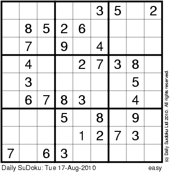 The Daily SuDoku: Tue 17-Aug-2010